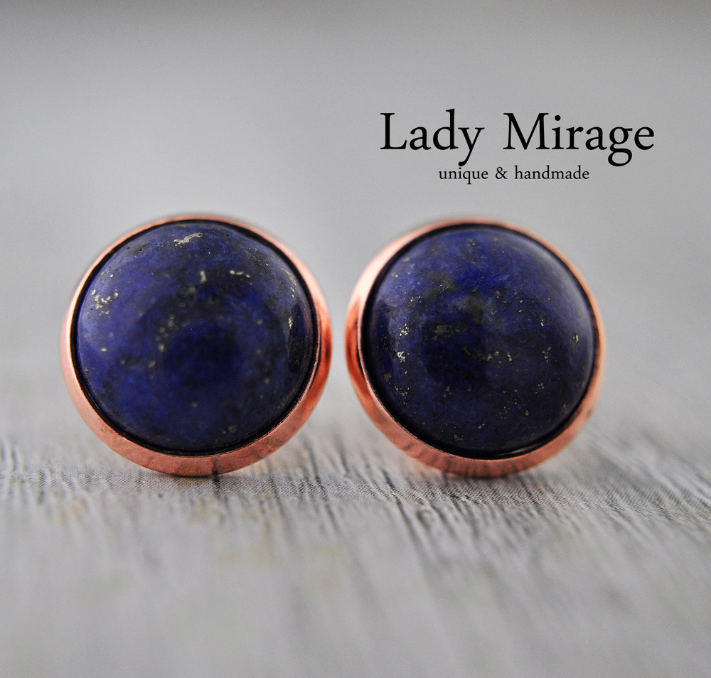 Roségoldene Ohrstecker mit Lapis Lazuli-Edelsteinen verziert.