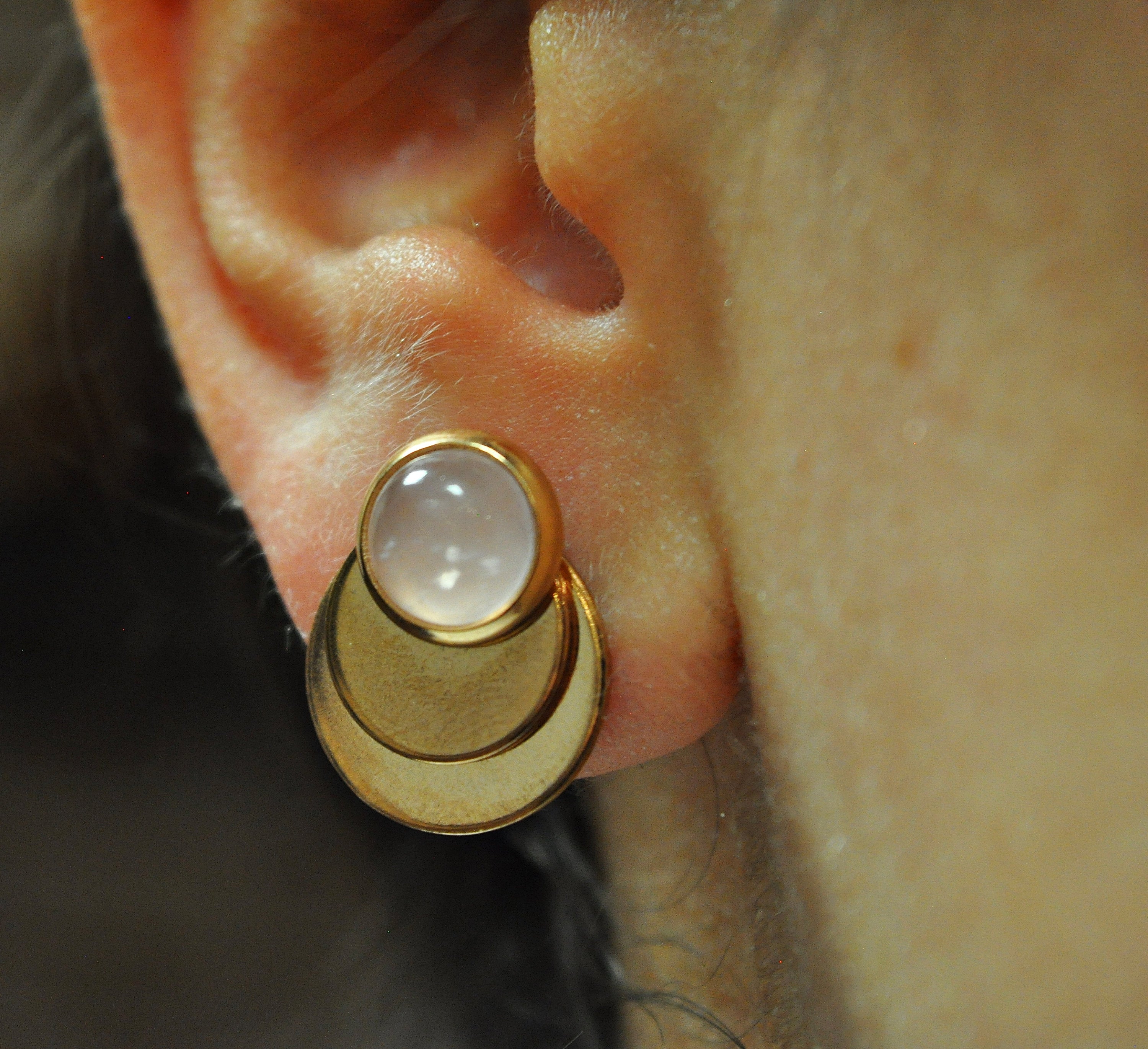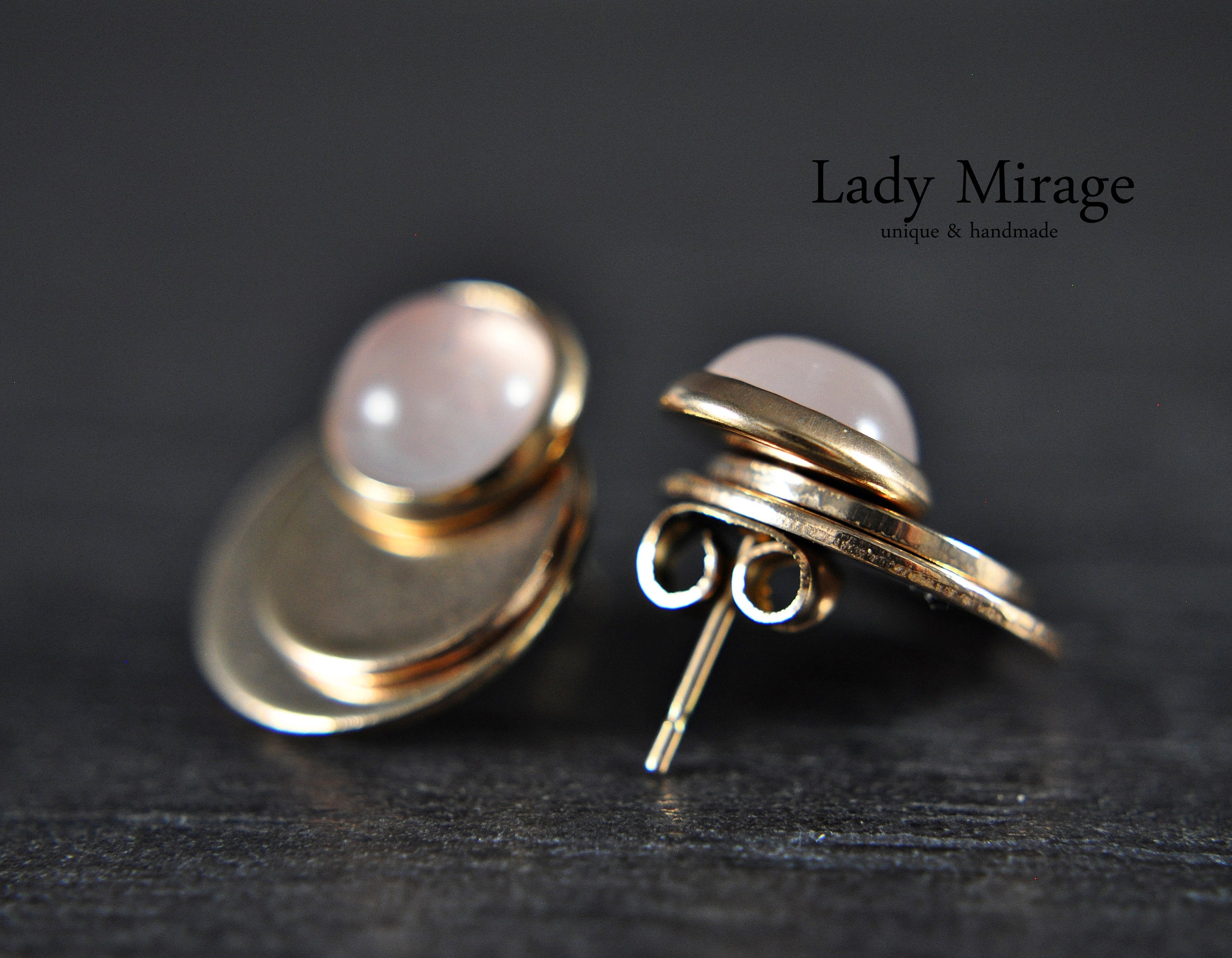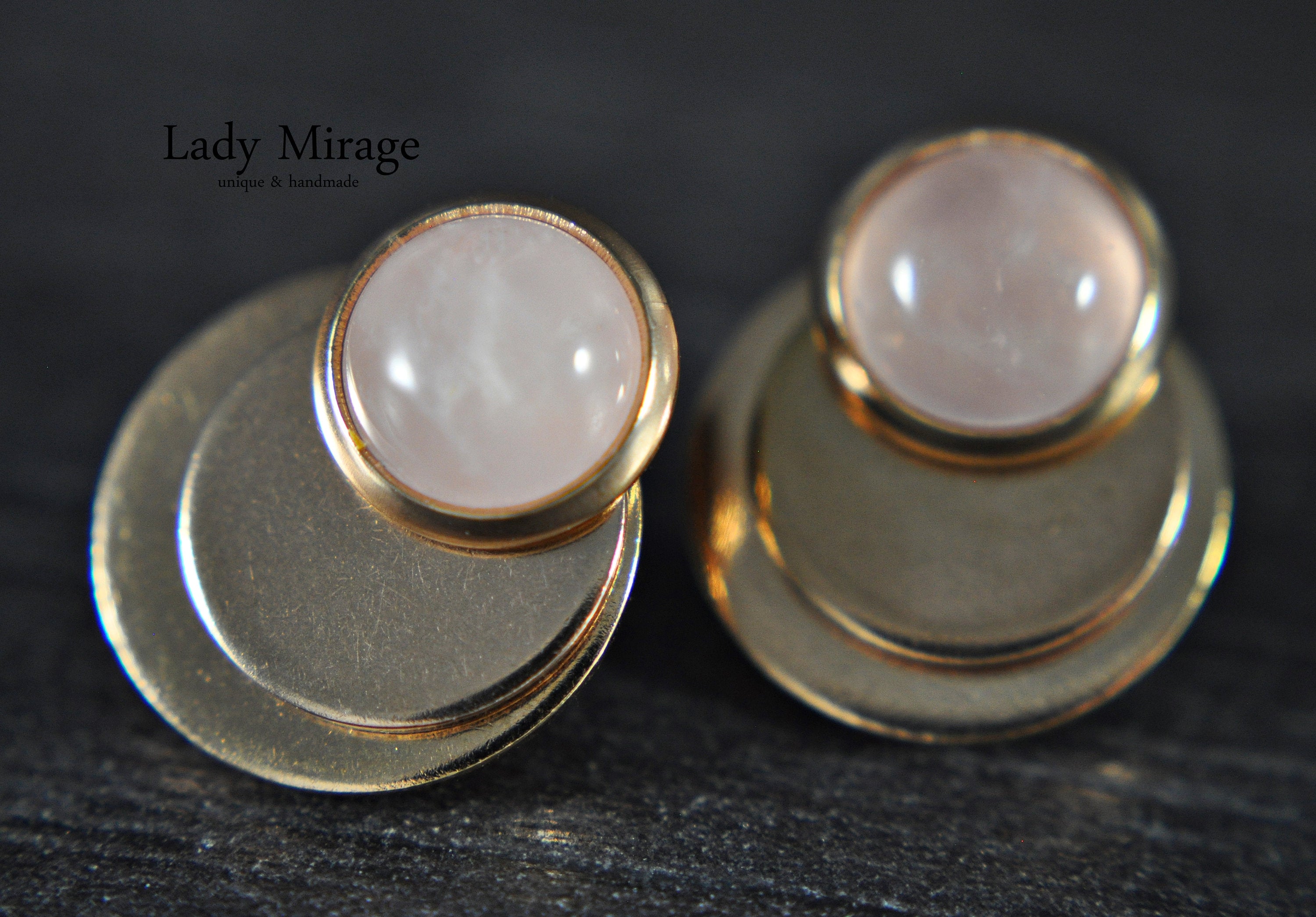 Rosenquarz Plättchen Ohrstecker aus Edelstahl