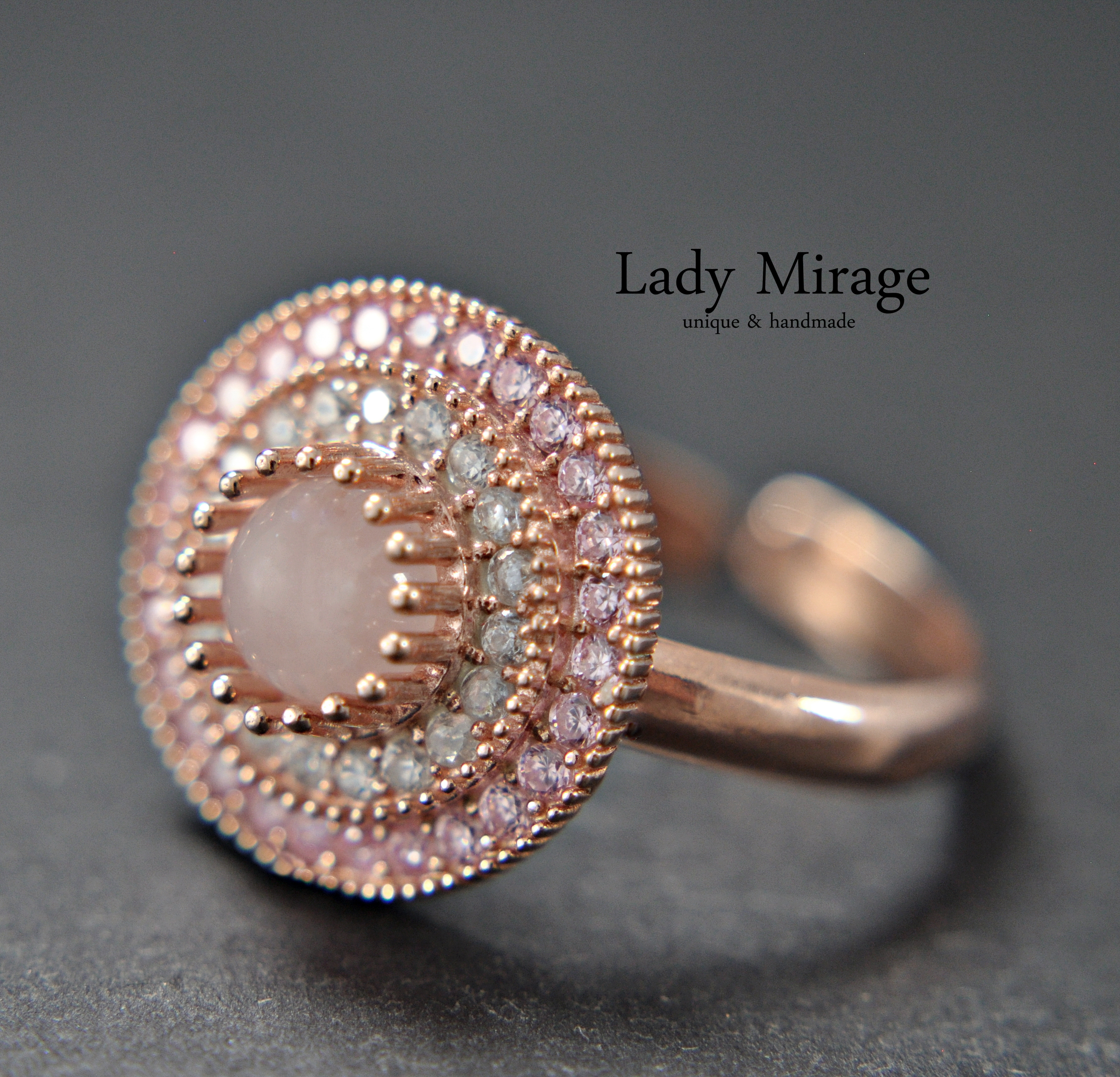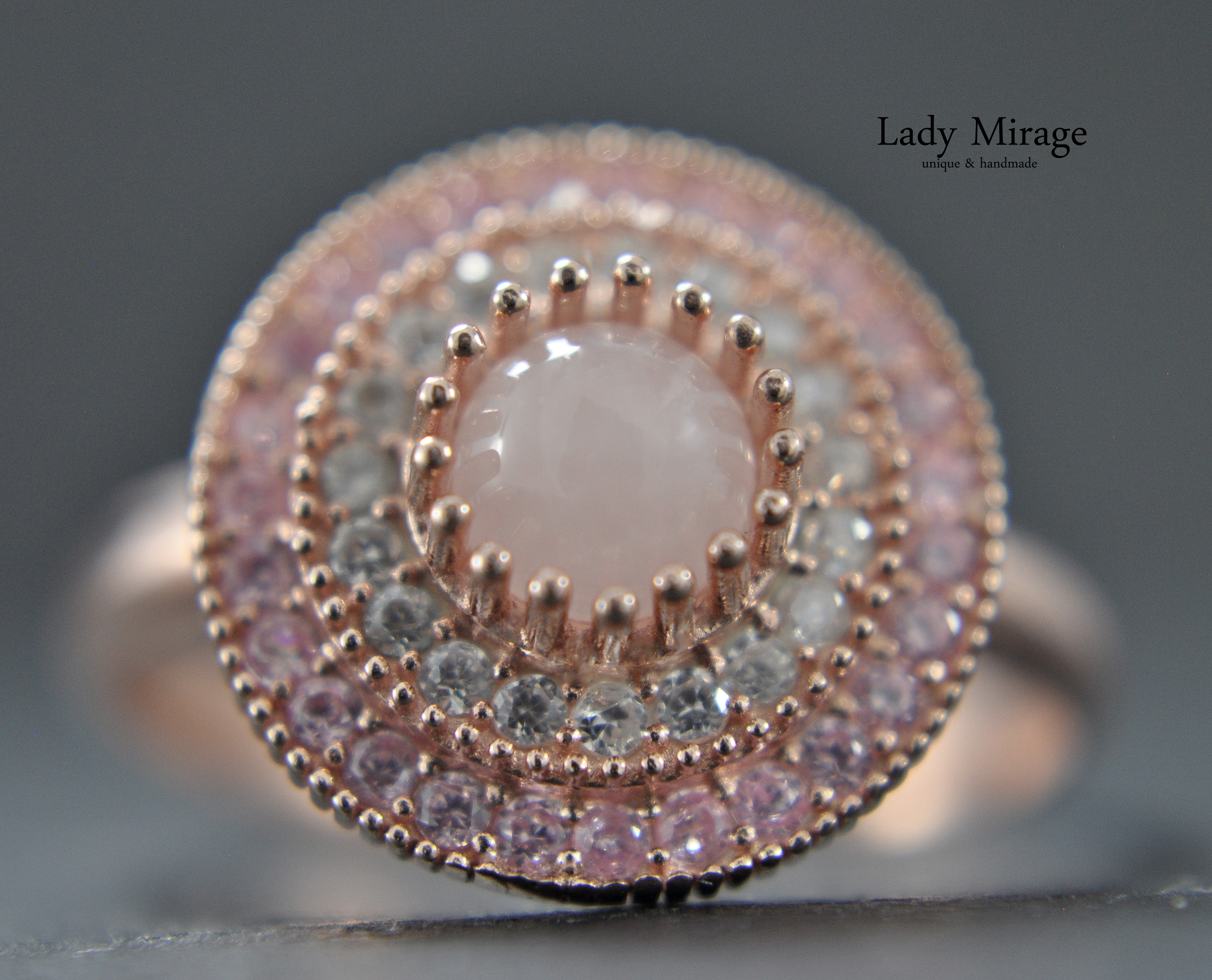 Startseite » Silberring 925 - Rosenquarz Edelstein - Roségold - Verstellbar - Kristall Schmuck - Brautschmuck - Zirkonia - Handmade Gift Ideas - Rings
